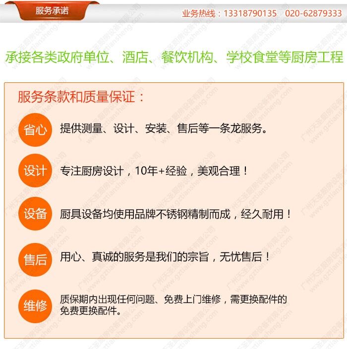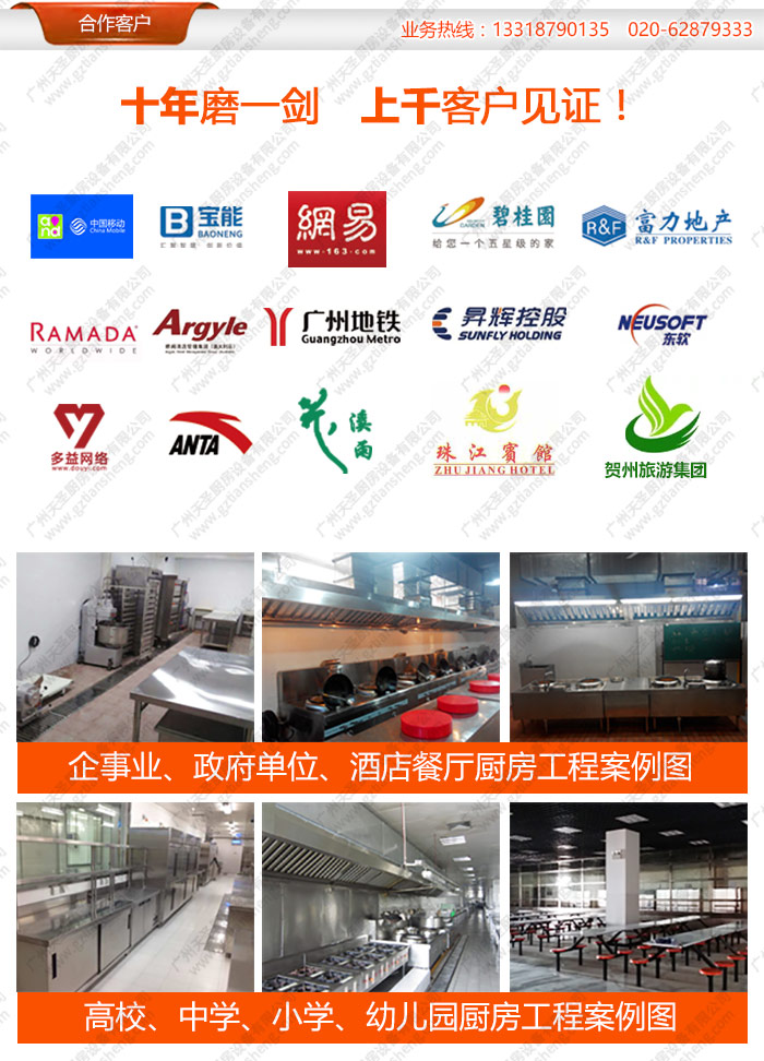 公司承接:酒店、餐厅、学校饭堂等企业单位厨房设备工程。如不锈钢厨房工程、中西式厨房工程、厨房改造工程、厨房设备安装工程、厨房设备维修工程、电磁节能厨房工程、通风系统工程等工程设计、制作、安装、维修一条龙服务。