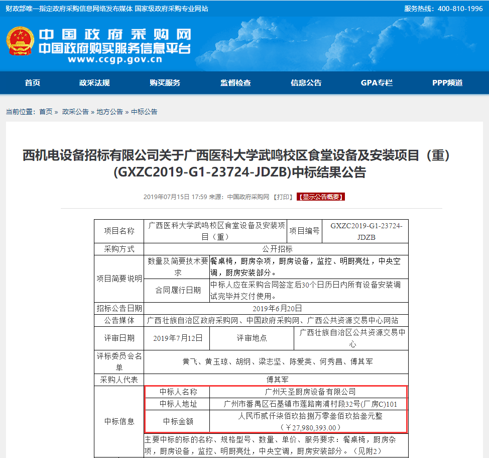 项目名称:广西医科大学武鸣校区食堂设备及安装项目(重)项目编号GXZC2019-G1-23724-JDZB