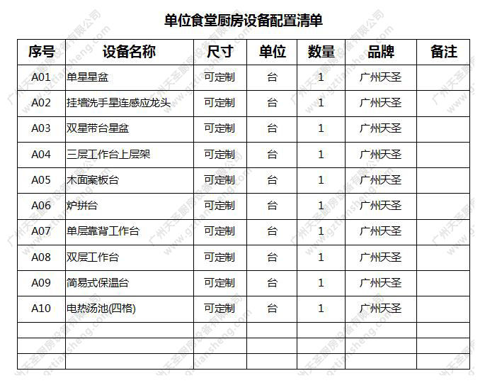 假如你刚好想打造一个单位食堂,那么这份清单最合适你了,赶紧下载参考一下吧!